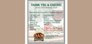 We want to thank our fans for nominating us for a record 17 categories in the Summit Daily News – Best of Summit competition. We placed in 2 categories: 2nd in Best Restaurant in Dillon and 3rd in Best Sports Bar. We were finalists in: Best Brewpub/Brewery, Best Customer Service – Restaurants, Best Restaurants – Summit County, Best Family Restaurant, Best Lunch, Best Burger, Best Beers on Tap, Best Apres Ski, Best Deck/Patio, Best Late Night Scene, Best Bar, Best Bartender, Best Bloody Mary, Best Margarita and Best Place to Work. We were even nominated for the Best Restaurant in Silverthorne — we are close to the Dillon/Silverthorne town limit line — but of course that wasn’t accurate. We are so very happy to have received so much praise. Cheers!